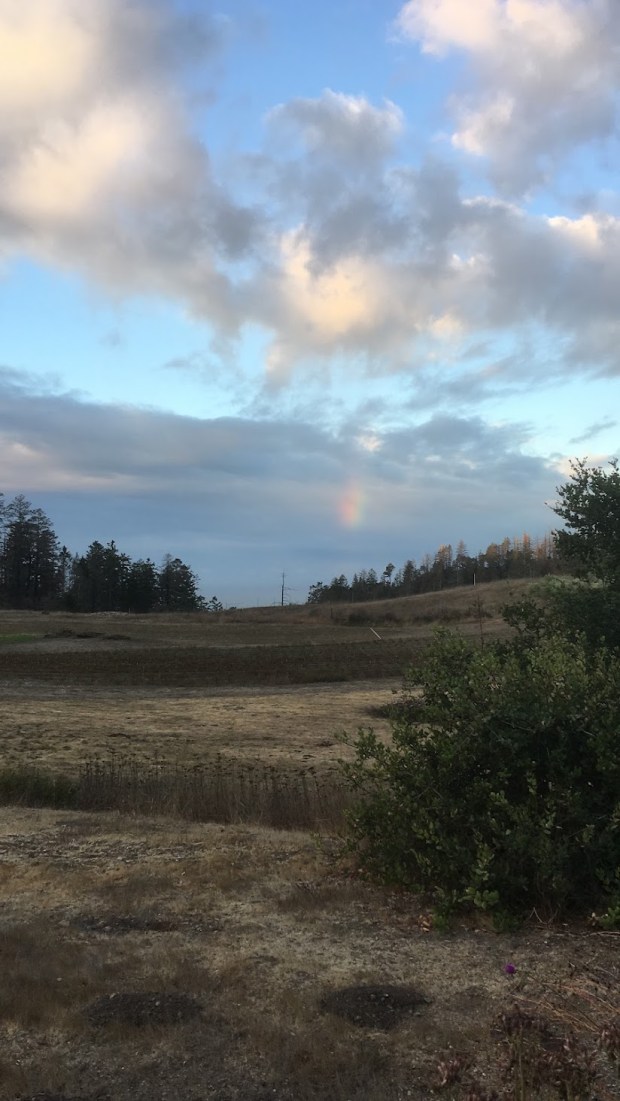 Rain skipped us again this past week, it is so very dry. Many people remarked about the offshore rainbows first thing one morning. That day it smelled like rain and looked like rain, but it didn’t rain. Then it blew, blew, and blew. For more than a day, wind shook our homes. Harvesting apples high int eh trees on ladders was difficult. We watched more soil blow away, our roads swept clean of any loose material. The walnut trees to show early yellow fall color were blown to bare branches. Overseeing the squalls and wind, low in the sky, a beautiful golden sickle-shaped moon was surrounded by bright fields of silver stars. The evenings darken early and the winter wet season looms.