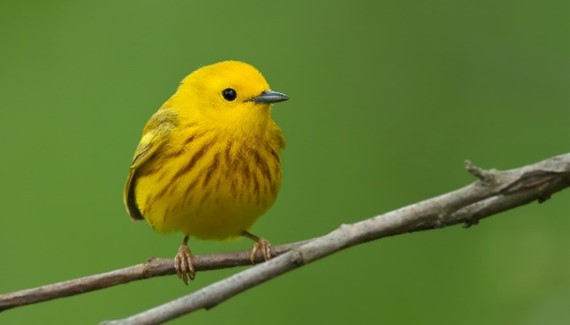Both that grosbeak and the bunting may have traveled from the coffee growing region of southern Mexico, where they spent last winter. Other species come from coffee growing areas even farther away, including: ash-throated flycatcher, olive-sided flycatcher, Wilson’s warbler and yellow warbler. That last deserves a photo, as well. That photo is compliments of Flickr user Kelly Colgan Azar.