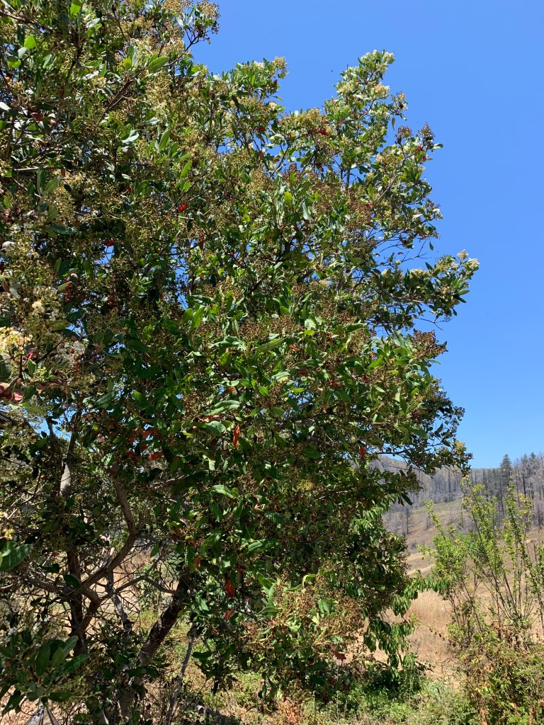 I took this photo of a 10 year old toyon just today, high above Davenport- in bloom and very lush looking.