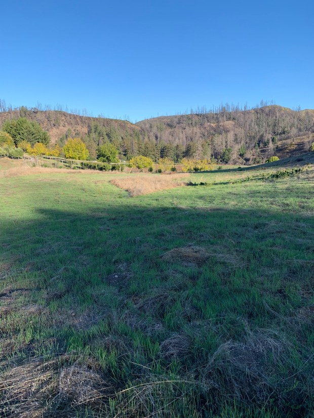 Amazingly, the bees have forage. It is ironic that it is harvest time for the humans and the bees might be hungry. Fall and early winter are starkest times for pollinators. Hummingbirds and bees flock to irrigated salvias in our gardens. But still, the coyote bush is in full bloom- but there are only a few old enough to flower- the fire spared ones are abuzz with diverse flying pollinators: flies, bees, and wasps. Evening brings the hawk moths to the jimson weed aka Datura and evening primrose, wildflowers that are also taking advantage of the garden irrigation for late season blossoming.