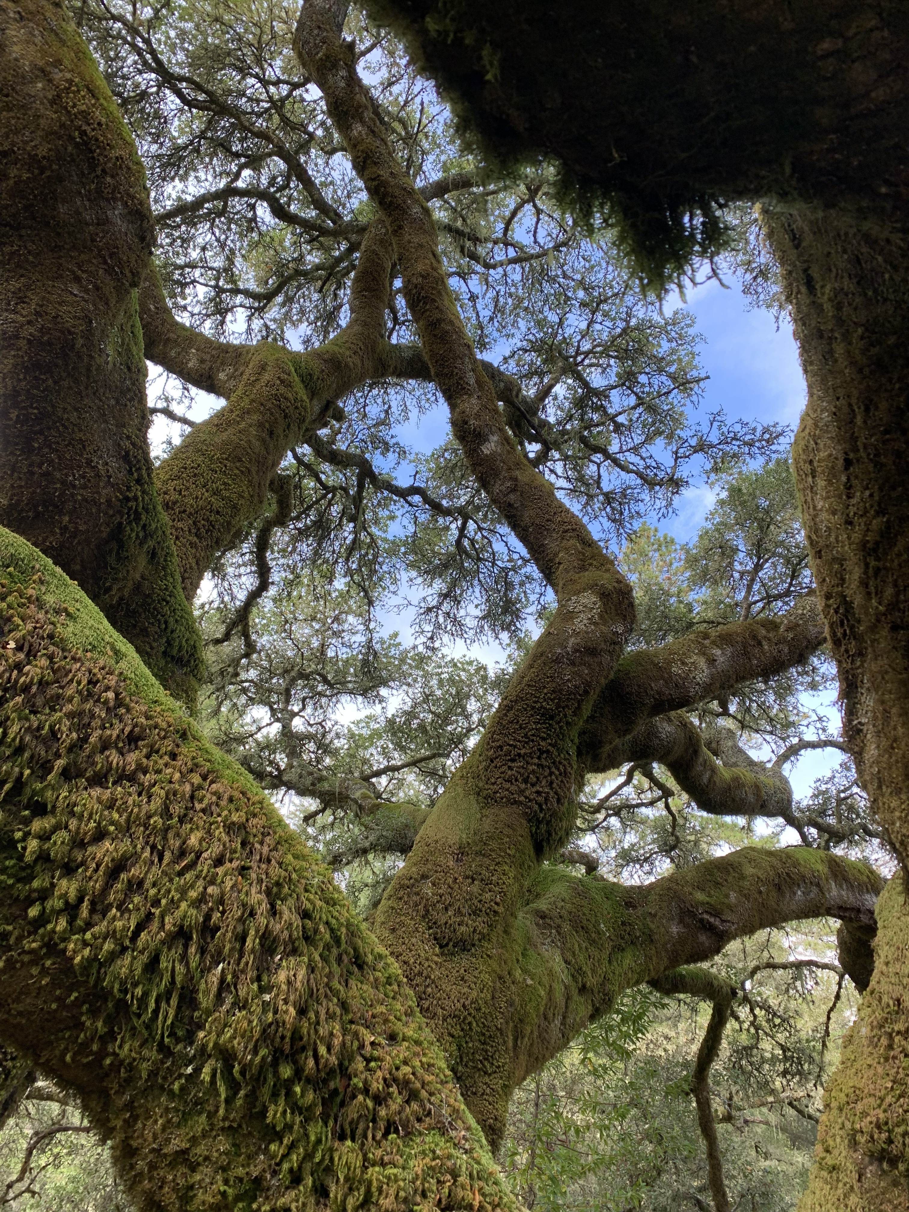 Towering live oak near Santa Cruz, California – epiphytic mosses and lichens regularly abound