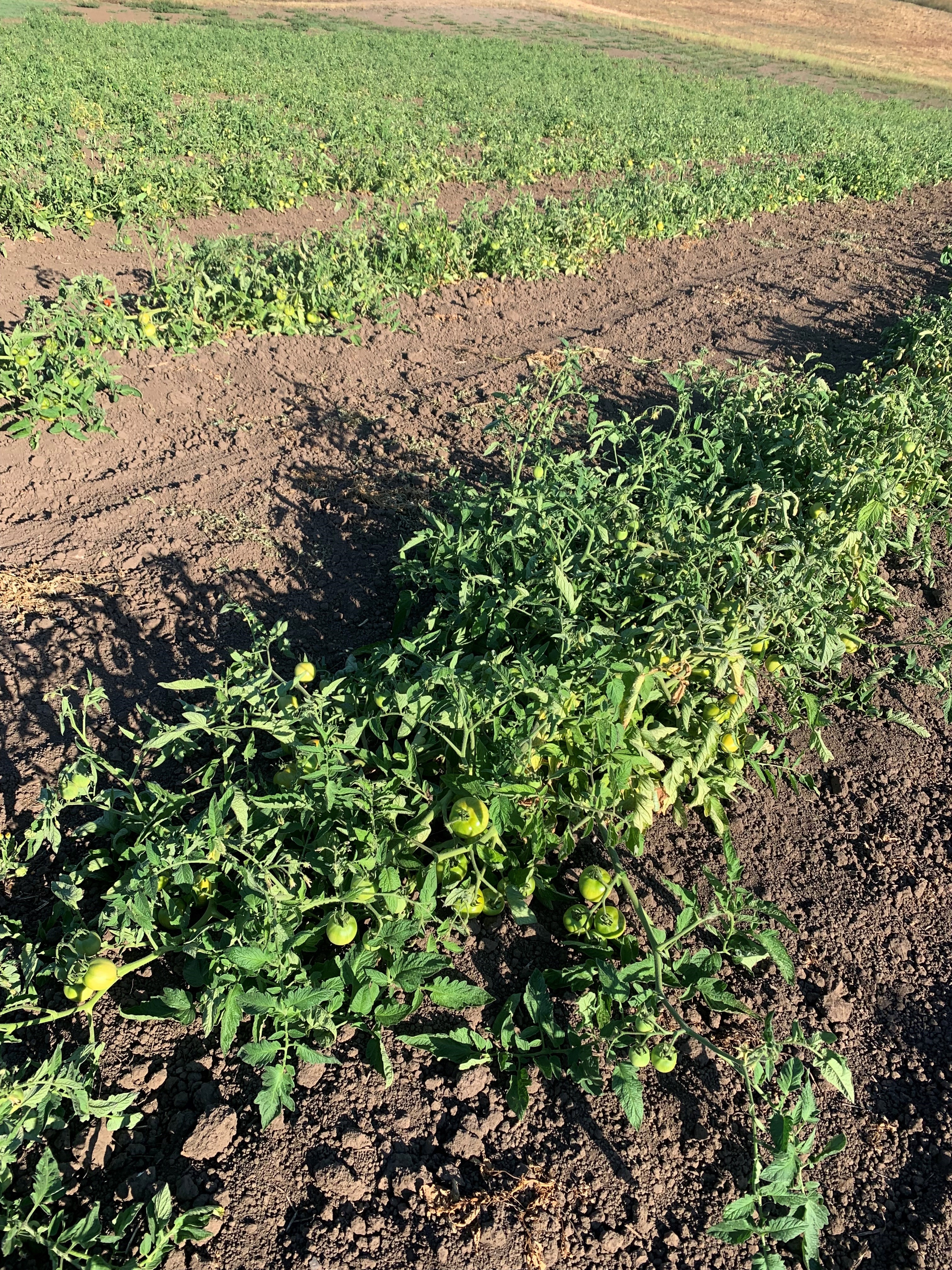 Post post-Hurricane Hillary, the farm is warm, awaiting the restarting of the upwelling and onshore breezes due in a few days. The warmth is perfect for tomatoes and the lack of much rainfall helps a lot too: they hate wet leaves! The sprawling tomato vines are loaded with big, pale green fruit. Soon, there will be so many tomatoes that it will be difficult to keep them harvested fast enough. For now, we eye each ripening fruit with glee: there aren’t that many! It is also the time when Maw and Caw, our big black farm ravens, are frequently seen carrying red, cast off tomatoes happily to some perch where they feast with gusto.