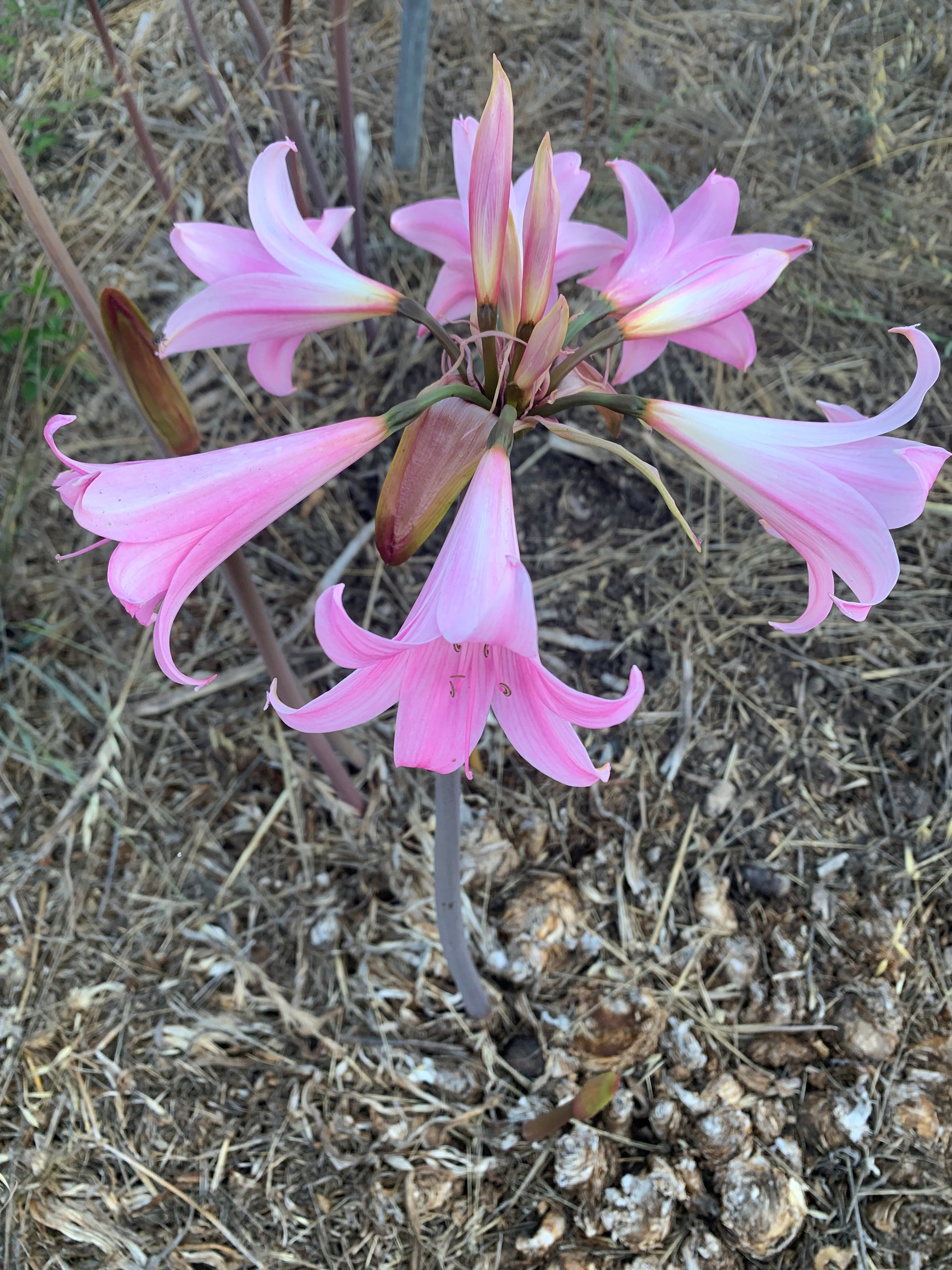 The farm is full of scent. With the storm’s weird warm winds from odd directions (east!), came the resinous, sweet smell of ceanothus…but only briefly. The orchard smells of damp earth with hints of fungus. Passing the vineyard, the smell of the devil: sulfur! Then, there are occasional sweet smells…surprising sweet smells. The latest nose candy is emanating from the Surprise Lillies aka ‘naked ladies.’ Some prior farm denizens took a liking to these Amaryllis and planted them hither and yon. They are impossible to get rid of and they smell of pink candy. But, they make striking cut flowers if you don’t mind the sweet, sweet smell.