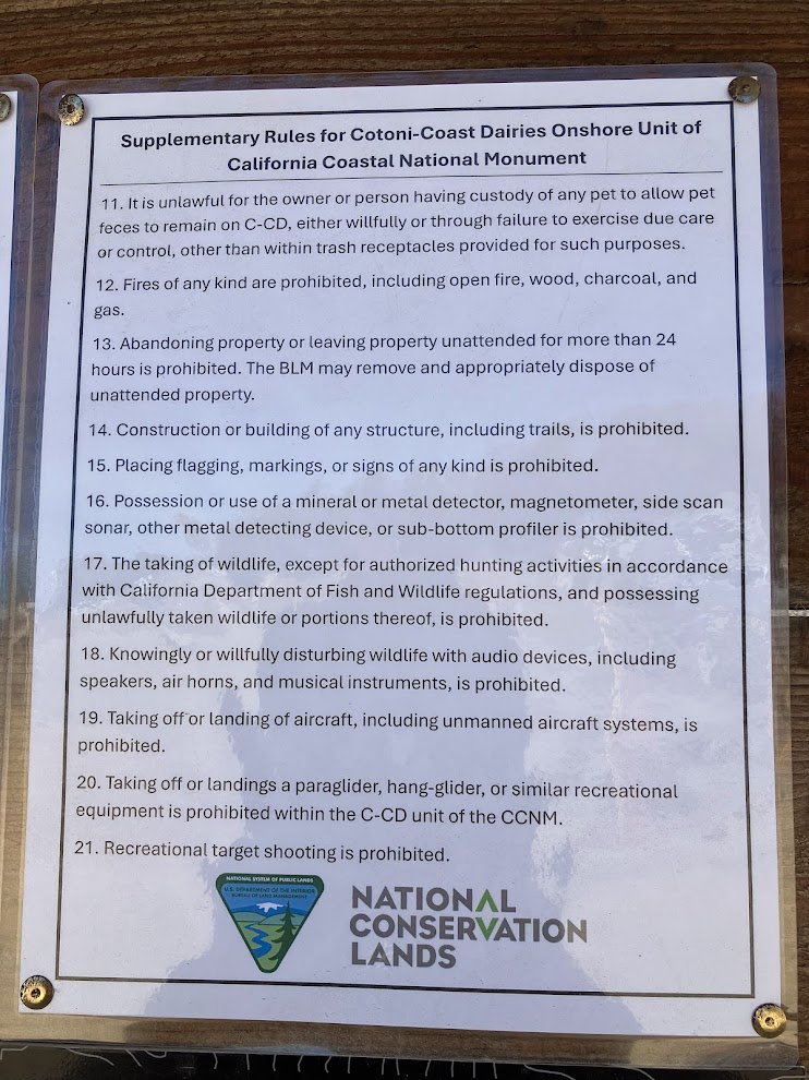 It has been a while since I gave an update on Cotoni Coast Dairies, but I have previously written much about that piece of (unfortunately) federally-owned ‘conservation’ land on Santa Cruz County’s North Coast. In August 2025, BLM staffer Zachary Ormsby had a chance to address the public about the parkland. Here, I present additional perspectives including some more recent developments.