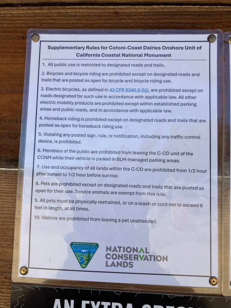 One of the mandates for BLM at Cotoni Coast Dairies was changing the historic livestock regimes to something more innovative and natural resource protection oriented. Up went super expensive high-tech antennae. Cattle were fitted with electronic shock collars designed to train them into grazing within ‘invisible fences.’ Innovative, indeed- especially if there was a grazing PLAN (there isn’t)! As of Spring 2026, this technology remains innovative in one way only: convincing the public that something innovative is happening with the livestock program: otherwise, no one has turned on the switches to make the system active. However, innovative livestock management isn’t the only thing lying dormant on the landscape…