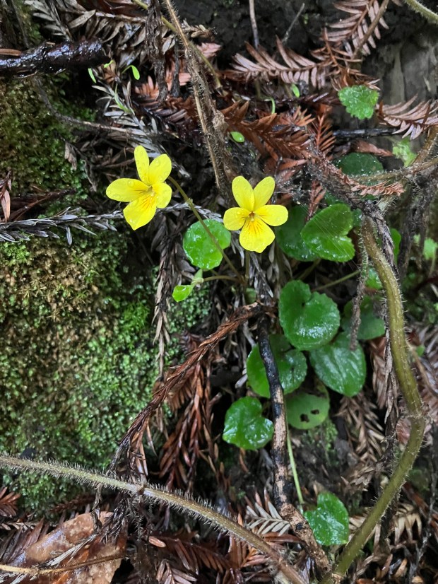 The rain is captured and concentrated in the high boughs of redwoods and firs. Drizzle coalesces into big drops plummeting, sometimes making sharp smacks against limbs, shattering. Mostly, though, the raindrops are muffled quietly diffusing into deep, fluffy needle duff. Giant bananaslugs scoonch across trunks leaving silvery slime trails.