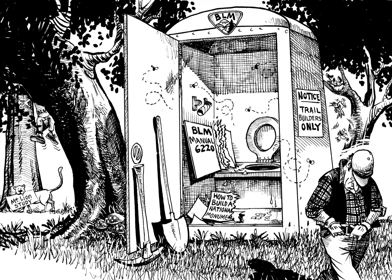 Then, the BLM routed hundreds of thousands of dollars, sole-sourcing a contract to a mountain biking advocacy organization to build the kind of trails their users wanted to see. That business quickly changed their name to a ‘trails’ organization. Instead of supporting good paying local jobs, the BLM paid this organization to rally volunteers to do the work of installing trails that were placed across a landscape without regard for the wildlife written into the President’s Proclamation for protection. When asked about how they could do such things when the property’s designation required favoring conservation over visitor use, BLM cynically snickered that the majority of the property, 51%, is set aside without public access. The rest, apparently, is a sacrifice zone.