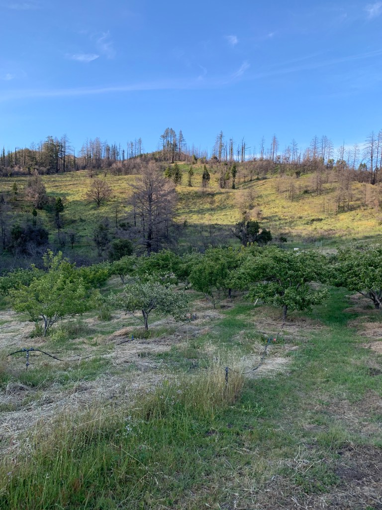 Apple petals have mostly fallen to be replaced by clusters of fuzzy, baby fruit. Instead of being a sea of white-pink blossoms, the orchard is fresh, light spring green with new leaves emerging from rapidly elongating shoots. Waist-high weeds have regrown where a month ago we had mowed to ground the cover crop. It is past time for another mowing. The baby plum fruit are already quarter-sized and shiny, too thick and needing immediate thinning; the apple fruit are close behind. Our regular trips to the orchard to fix and run irrigation have recently begun to include a pause to thin fruit. Soon, all attention will have to turn to thinning thousands and thousands of fruit to make room for the many fewer chosen ones.