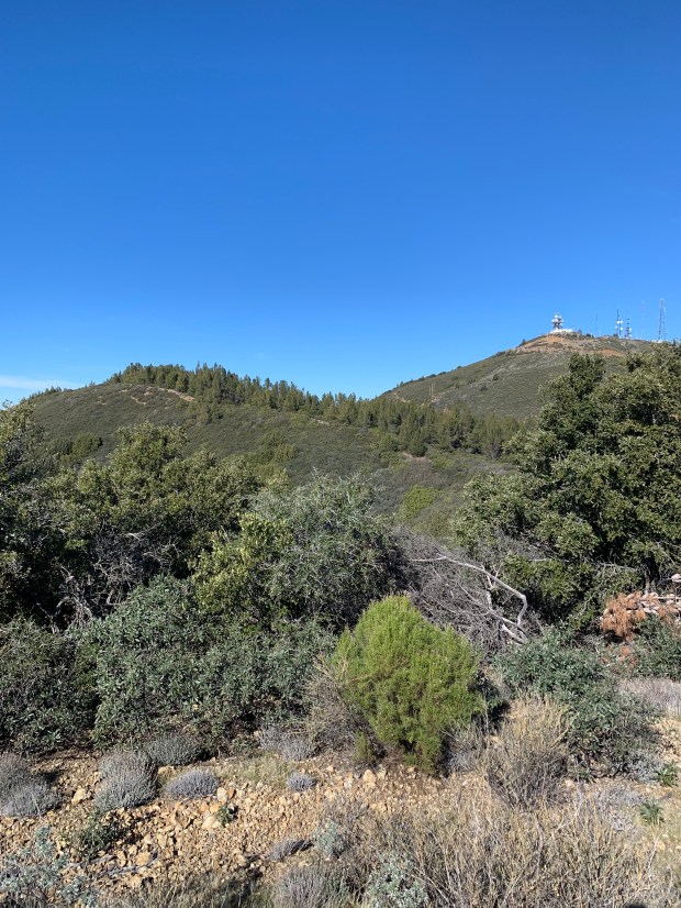 There are drought-deciduous plants and seasonally-deciduous plants. Their sometimes-colorful leaf drop is starting to overlap. Poison oak is one of those deciduous plants that are in between: on drier slopes, crimson patches have been emerging for a month as that plant decides to drop its leaves, leaving only stems and berries. Buckeye trees are dropping medium-brown leaves, too: very little Fall color to add to the landscape’s palette. Madrone Fall has happened already, leaves littering the ground most crunchily, bark peeling on the hot days making pinking and crinkling noises. Madrone trees lose their old leaves but keep their new ones. Bare madrone trees are dead, as is too often the case with some scourge that is ravaging many trees.