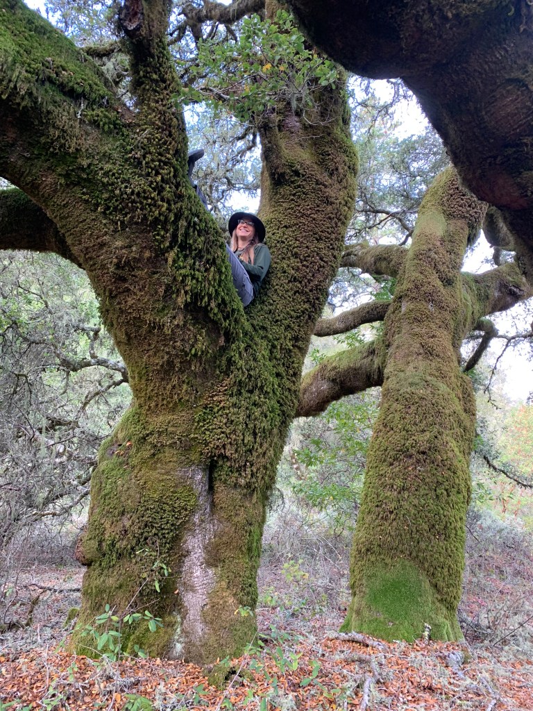 Silverspot butterfly larvae carve out semi-circular scallops in redwood violet leaves and, when you see those bite marks, that is likely the only hint that this butterfly larvae is around, because they feed at night! Arboretum Director Ray Collett alerted me about these silverspot butterflies 30 years ago. He had met a butterfly collector who pointed out Bonny Doon silverspot butterflies that matched the endangered Callipe Silverspot previously known only from San Bruno Mountain in South San Francisco. With that tip, a conservation geneticist friend of mine recently hunted our local one for a while but only caught one, which looks promising to be at least closely related to the endangered one, but more work needs to be done. Meanwhile, later in spring, we can be on the lookout for these mysterious and rapidly flying orange butterflies with silver spotted underwings that feed late at night on the beautiful yellow violet carpets of Bonny Doon.