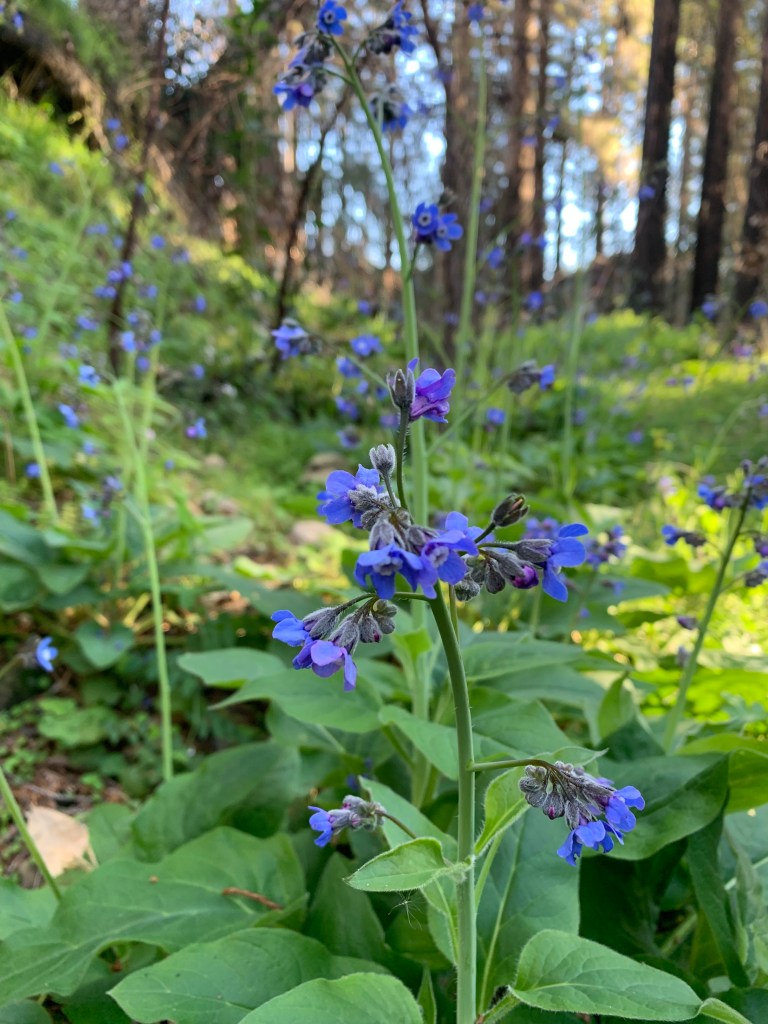 If they get pollinated, each hound’s tongue flower will make a cluster of 4 fruit that hang tight to the stem until they snag on a passing animal. Starting late Spring, a forest walk will make you clean your clothes, and in that mass of messy seeds pinched from your socks, you might encounter these wild borage seeds. The seeds are oval and fat with just enough hooks to grab onto someone’s fur. These hitchhiking seeds are the species’ way of establishing new patches, reducing competition with the parents. This might be especially useful when new colonies might establish in post fire areas.