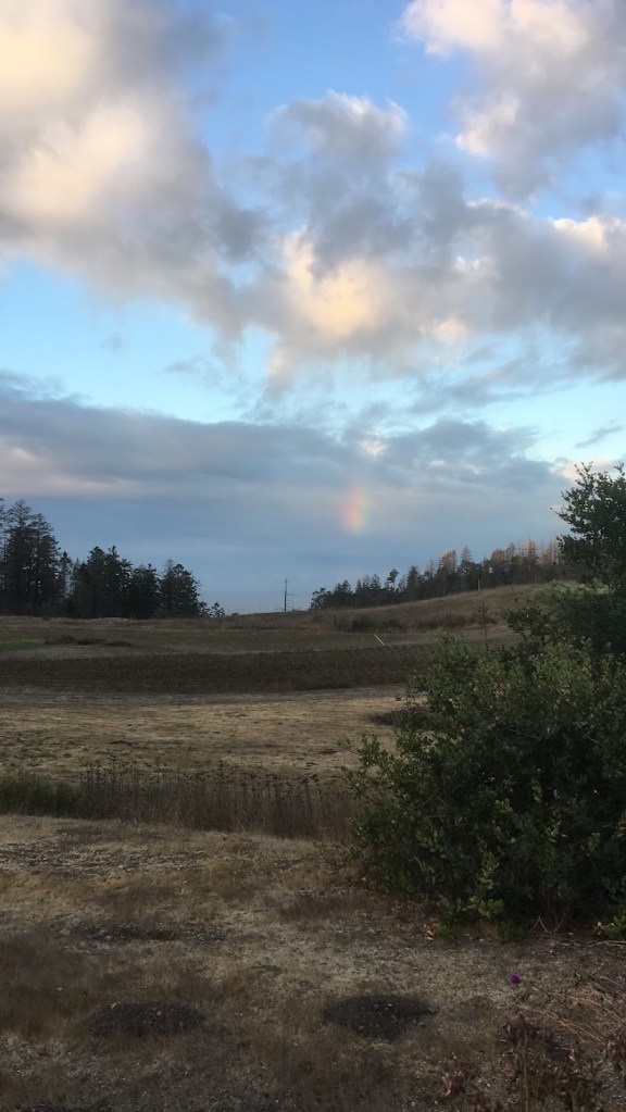 Coyote barks seldom. Cassandra reports seeing a particularly large one. They leave big poops full of tomatoes and apples. Sylvie reports fox feasting on her Asian pears- a tree worth. There are poops from fox, too, all across the farm. Weasels excavate gopher runs in the apple orchard, freshly dug soil mounds ending at large gopher holes each morning. There may be a weasel den under a prune tree.